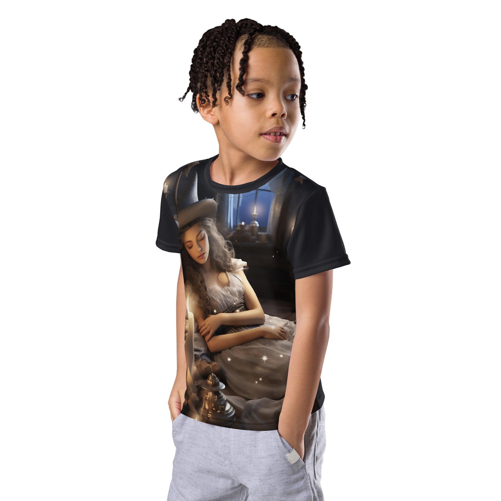 Crafted from the softest, cloud-light fabric, this t-shirt feels like a gentle hug from a friendly breeze. Its crew neck design is perfect for freedom of movement, letting kids climb, run, and conquer their day in comfort. Each thread seems to carry a sprinkle of stardust, making it as special as the little dreamers who wear it.