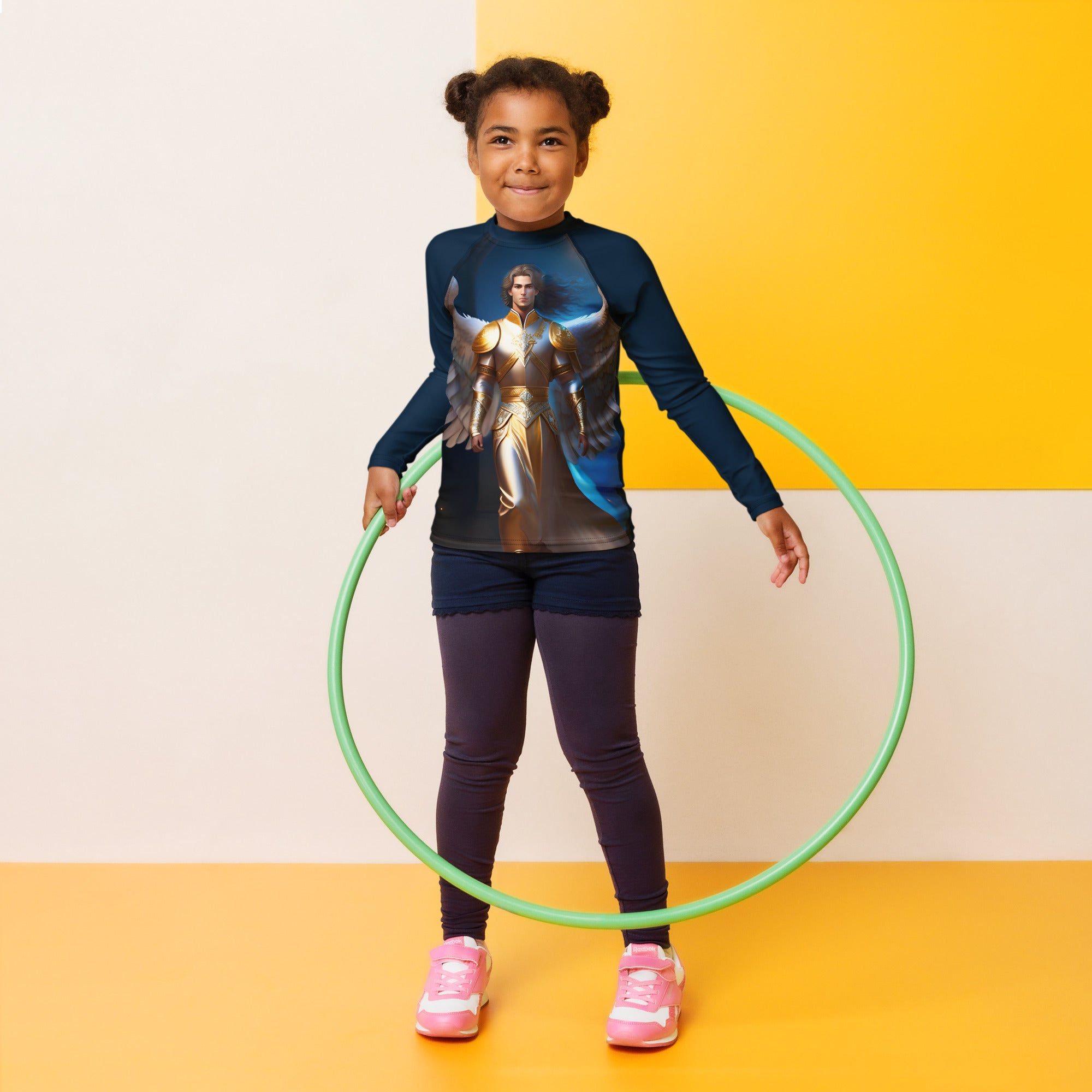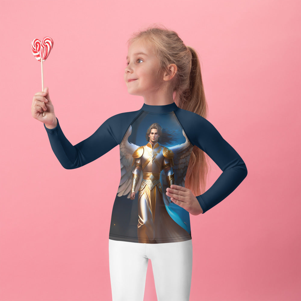 Picture them running along golden shores, splashing through enchanted waves, or racing under the brilliant sun. This rash guard becomes their loyal armor, crafted with sun-protective fabric that feels as light as a whisper yet holds the strength of a guardian. It offers a magical barrier against the sun’s warm embrace, so they can roam freely, from the first light of dawn to the dreamy hues of twilight.