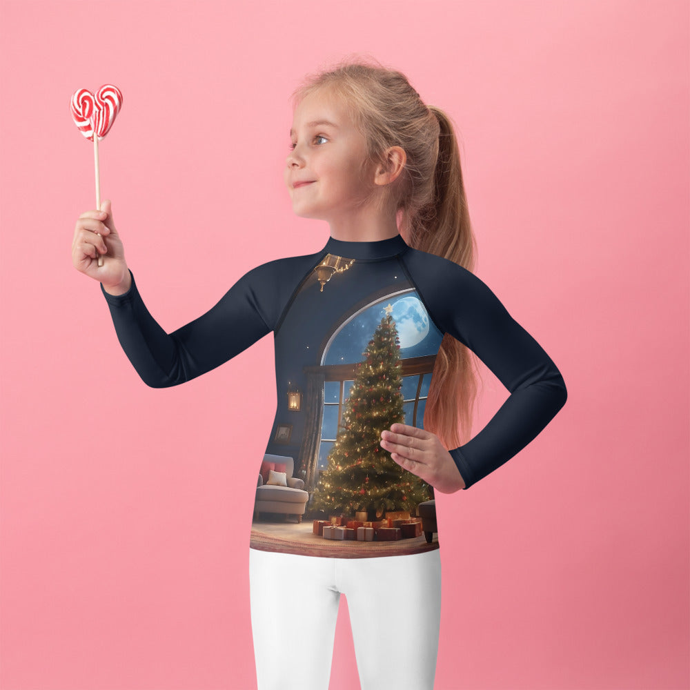 Picture them running along golden shores, splashing through enchanted waves, or racing under the brilliant sun. This rash guard becomes their loyal armor, crafted with sun-protective fabric that feels as light as a whisper yet holds the strength of a guardian. It offers a magical barrier against the sun’s warm embrace, so they can roam freely, from the first light of dawn to the dreamy hues of twilight.