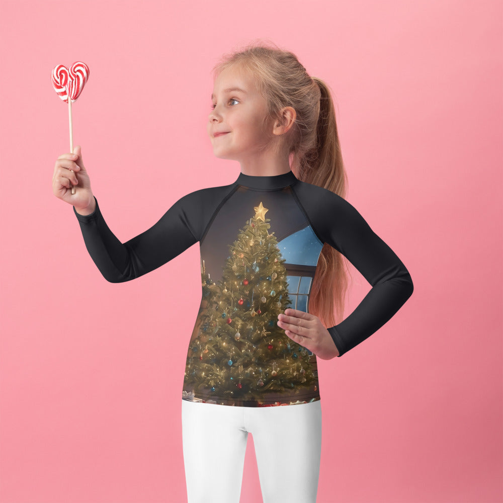 Picture them running along golden shores, splashing through enchanted waves, or racing under the brilliant sun. This rash guard becomes their loyal armor, crafted with sun-protective fabric that feels as light as a whisper yet holds the strength of a guardian. It offers a magical barrier against the sun’s warm embrace, so they can roam freely, from the first light of dawn to the dreamy hues of twilight.