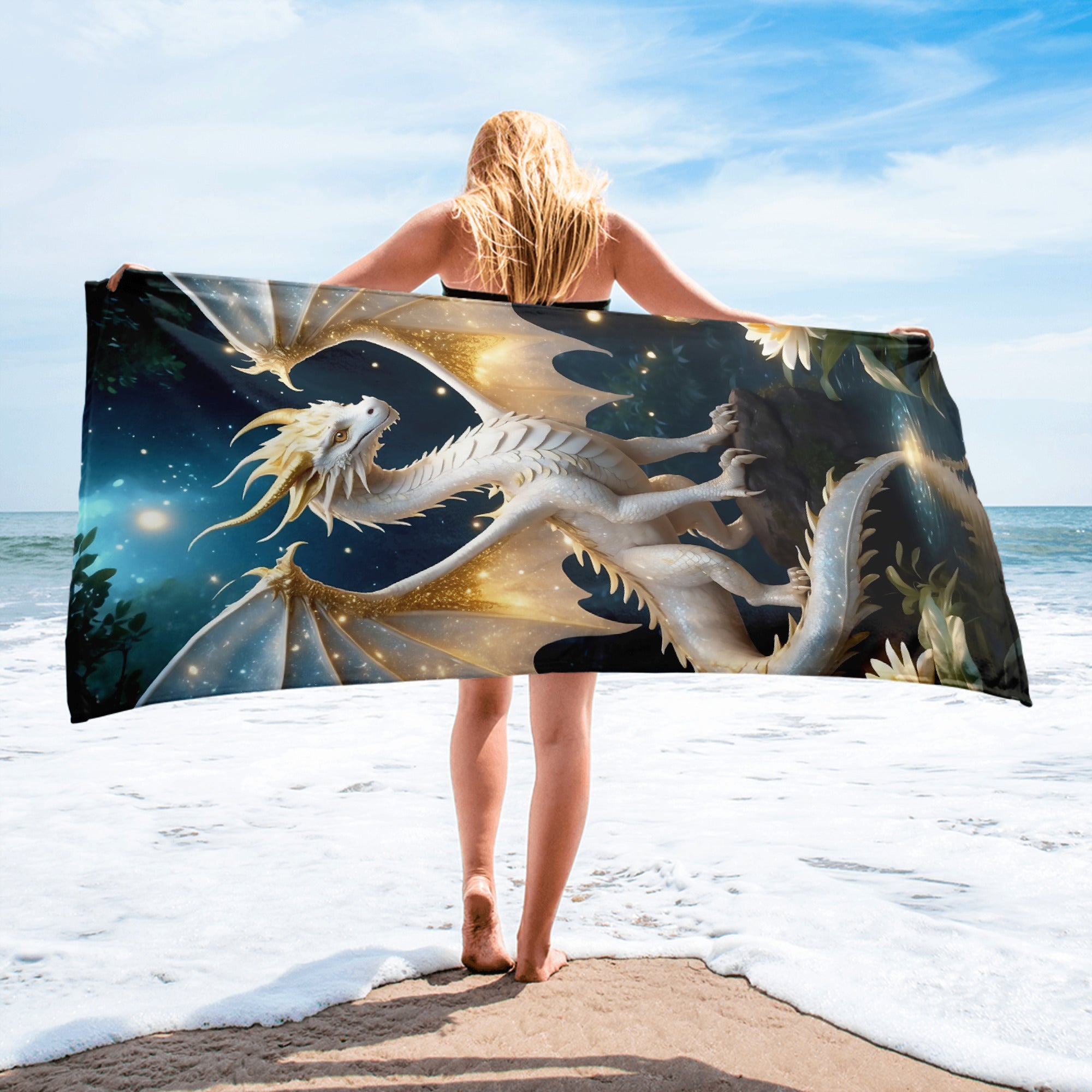As you sink into its comfort, the Towel creates a shimmering sanctuary around you. Its softness invites you to let go of the world outside, to close your eyes and drift into the realm within. This isn’t just a Towel; each time you wrap it around you, it feels like a radiant light enfolds you—a glow that shields and soothes, bringing you a feeling of profound safety and peace.
