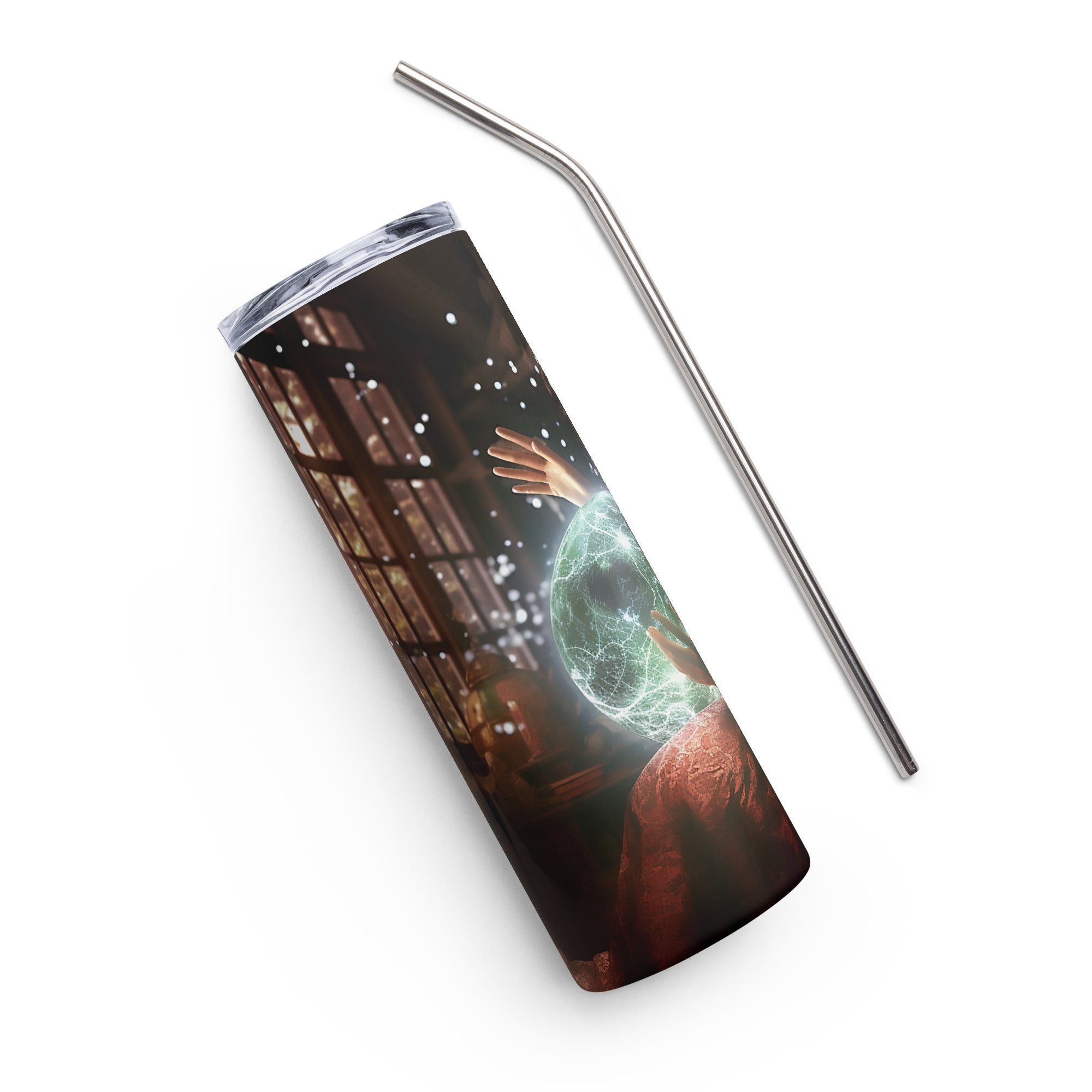 Imagine this tumbler is not just a simple drinking companion – it’s your loyal ally, carrying a special energy and support wherever you go. When you hold it in your hands, you feel its cool, smooth surface, like the reflection of a starry sky on a quiet lake. Within it lies a power that is released with every sip, offering warmth that strengthens you or freshness that awakens your mind.
