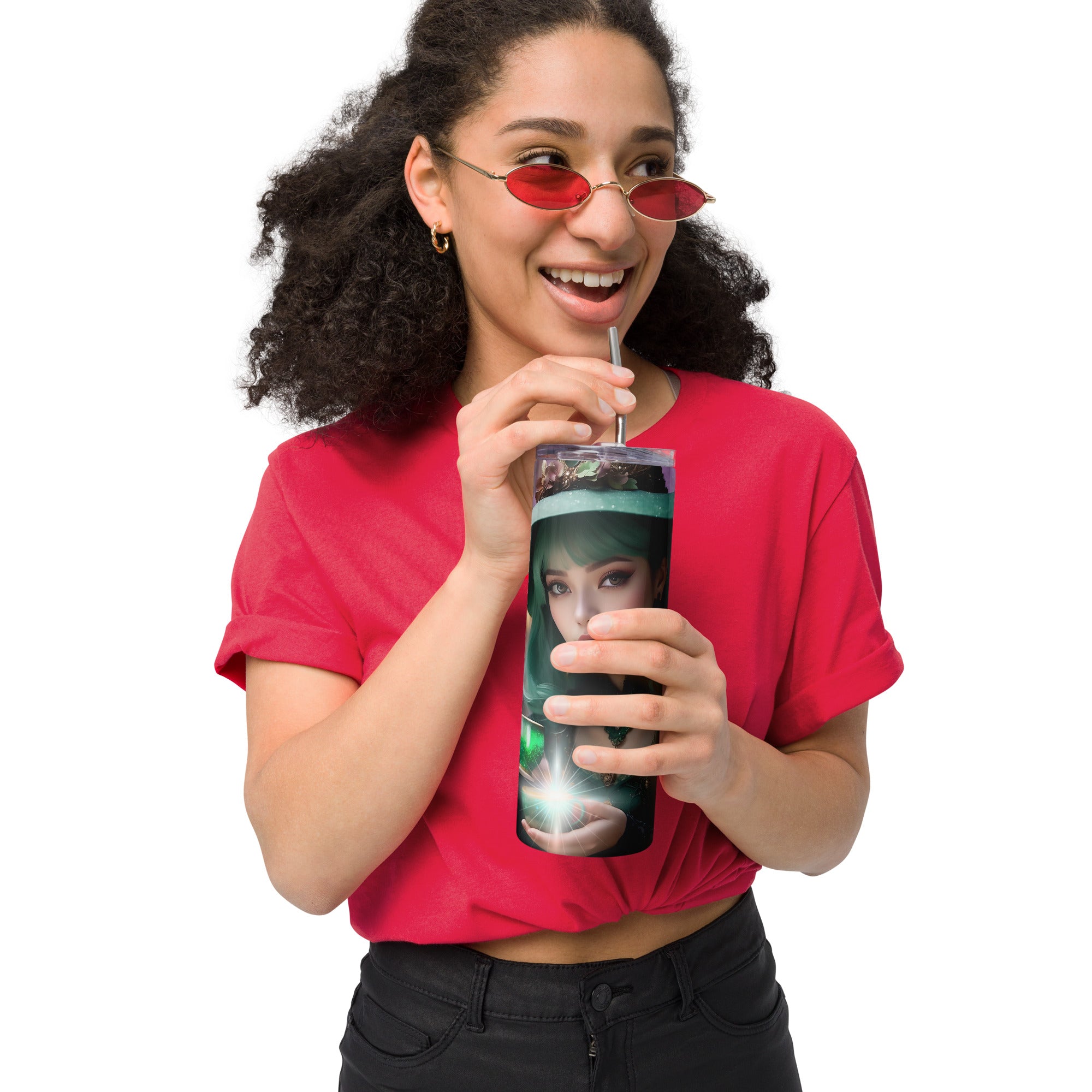 Imagine this tumbler is not just a simple drinking companion – it’s your loyal ally, carrying a special energy and support wherever you go. When you hold it in your hands, you feel its cool, smooth surface, like the reflection of a starry sky on a quiet lake. Within it lies a power that is released with every sip, offering warmth that strengthens you or freshness that awakens your mind.