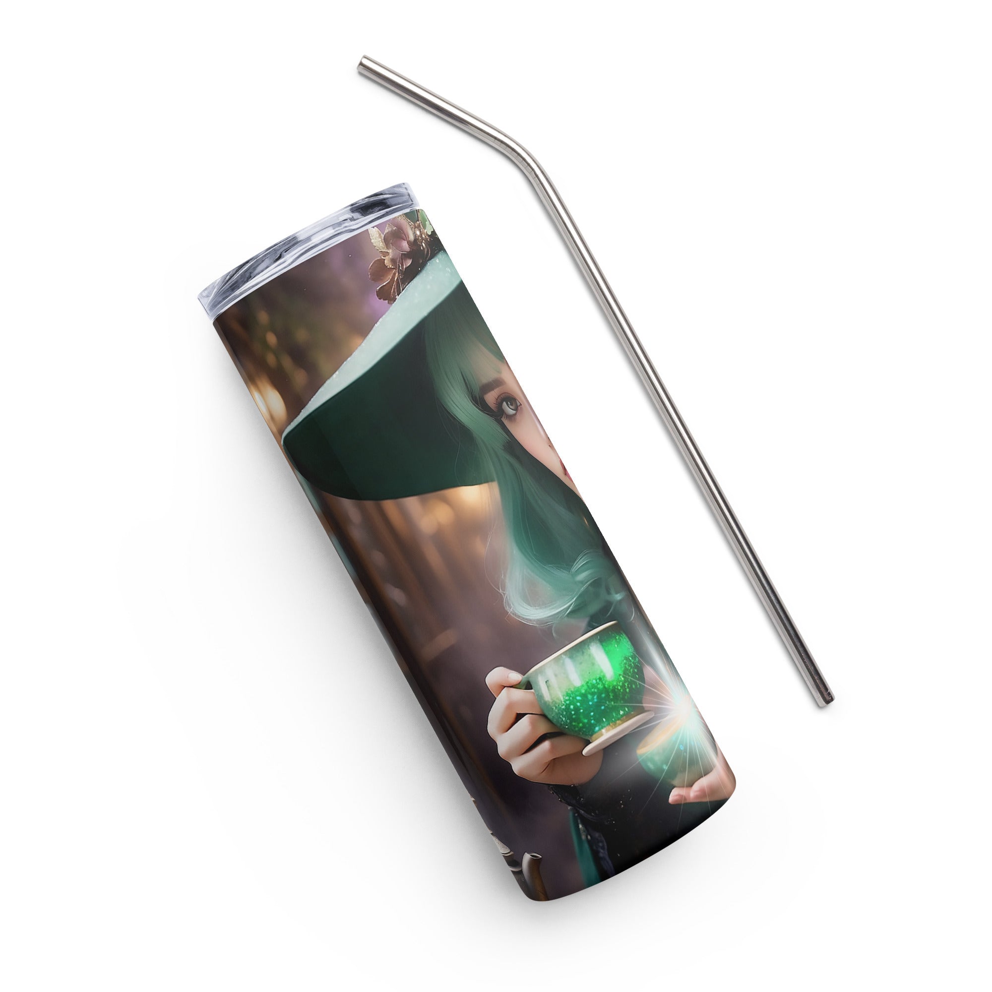 Every detail of this tumbler is crafted to merge elegance with functionality – as if forged in a magical workshop where metal meets dreams. The straw that comes with it is like a delicate silver bridge, carrying your favorite drink with just the right balance of warmth or coolness, as your heart desires.