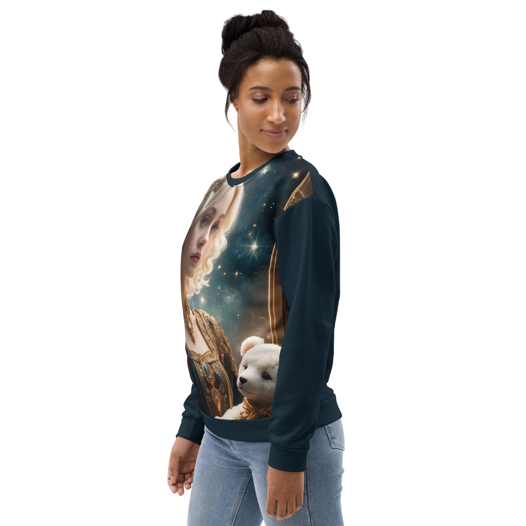 But this sweater holds even more than meets the eye. Beyond being a garment, it is an expression of your essence, a quiet way to show the world who you are. Each pattern, each detail, has been crafted with purpose – so you can communicate the subtle, beautiful energy you carry within. Whether it’s peace, strength, dreams, or radiant light, this sweater is your messenger, radiating your true self into the world with every step you take.
