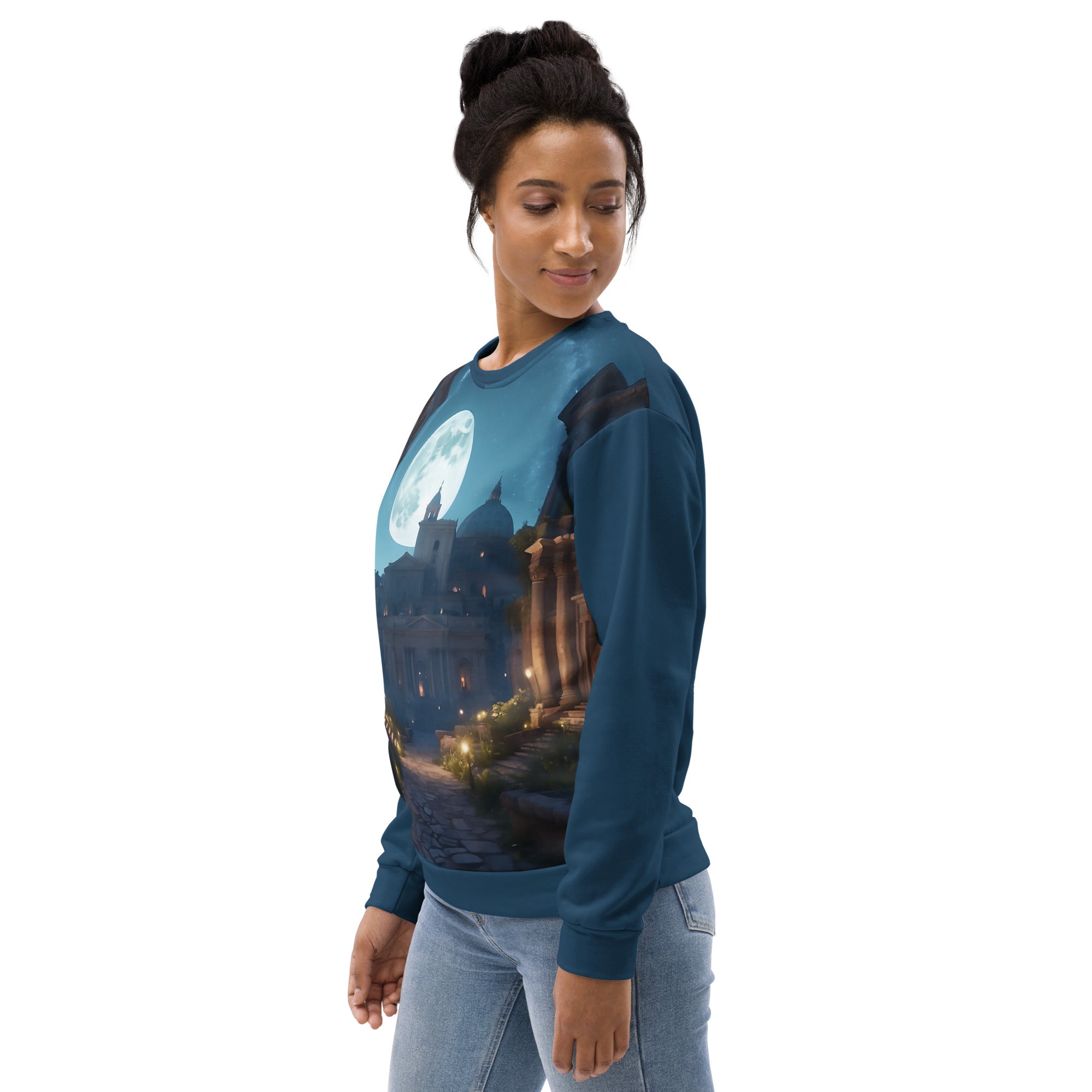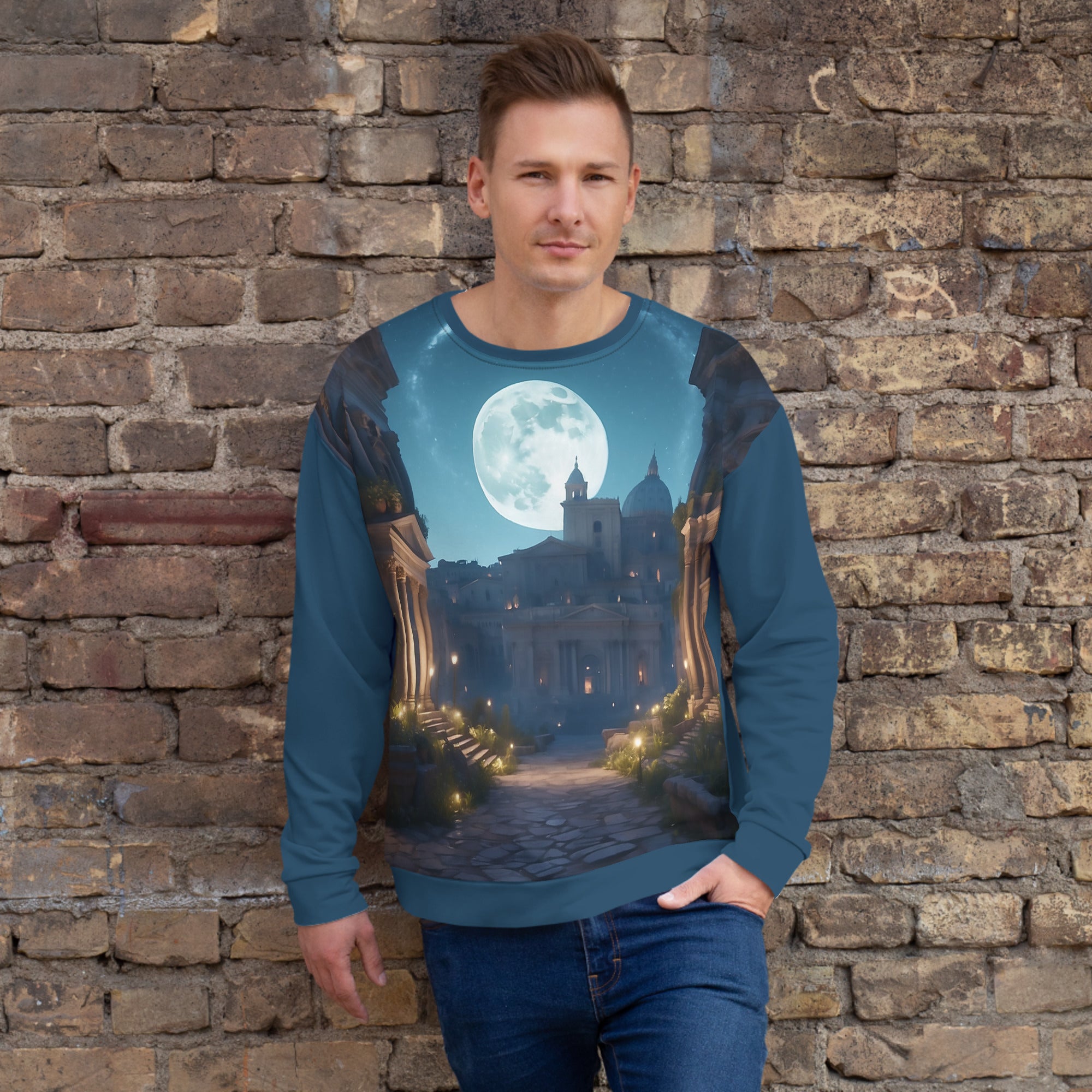 ATTENTION: This sweater is standard-sized with a touch of relaxed charm. For precise measurements, see the size chart located below. Due to its bespoke printing, exchanges are not possible if the wrong size is chosen. Since this is a uniquely designed piece, please read the special care instructions below.