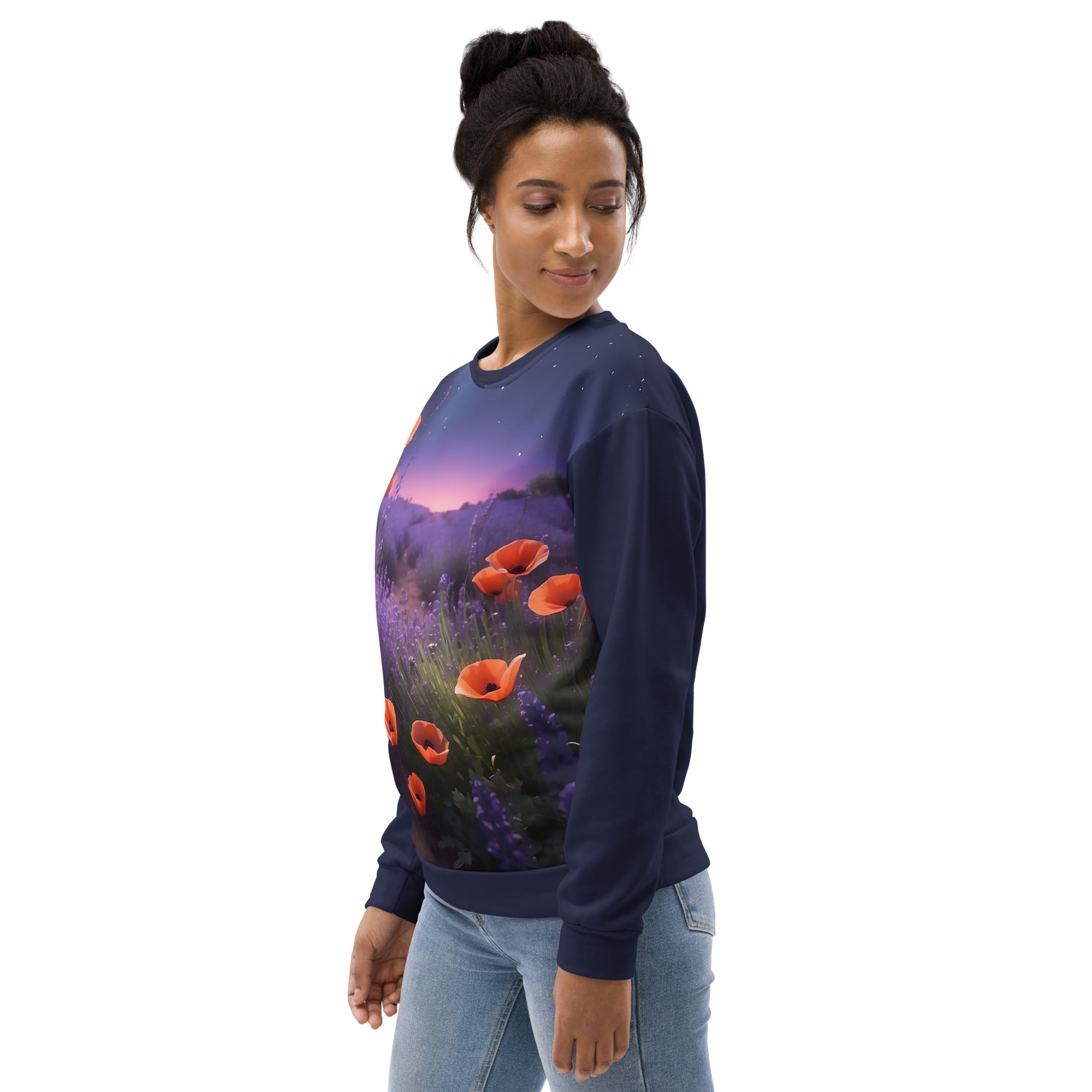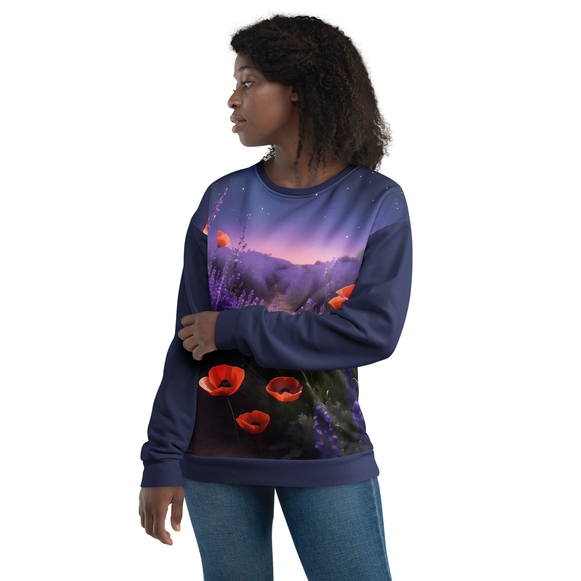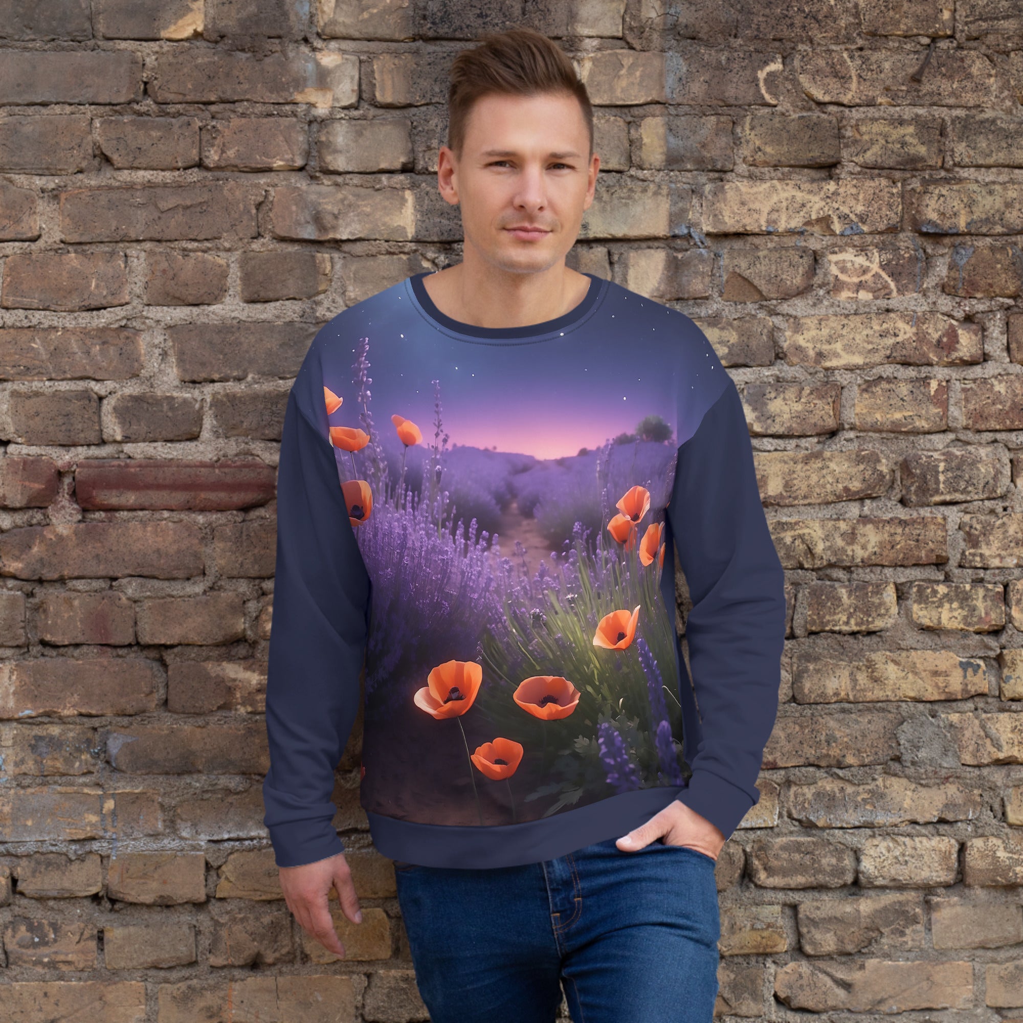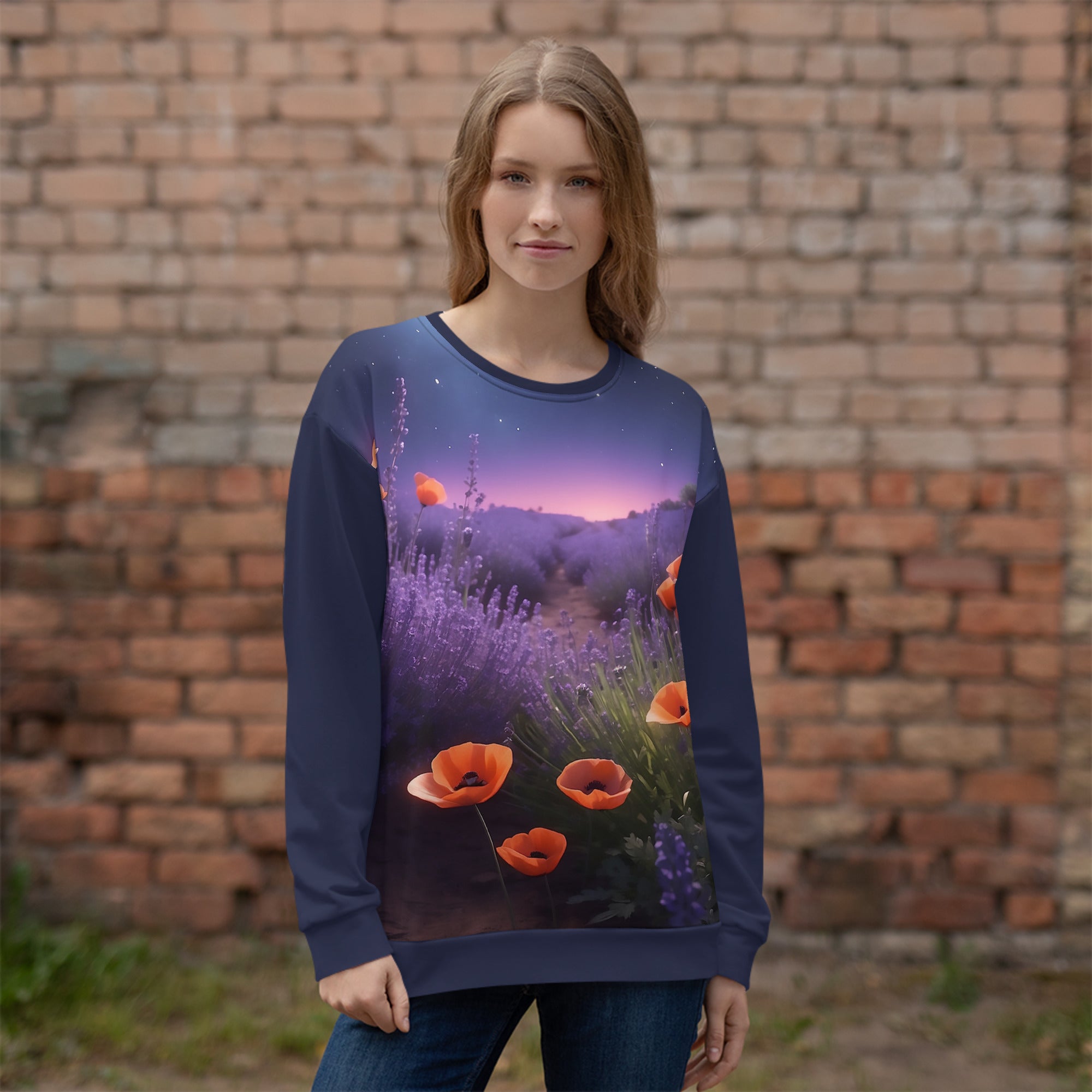 ATTENTION: This sweater is standard-sized with a touch of relaxed charm. For precise measurements, see the size chart located below. Due to its bespoke printing, exchanges are not possible if the wrong size is chosen. Since this is a uniquely designed piece, please read the special care instructions below.