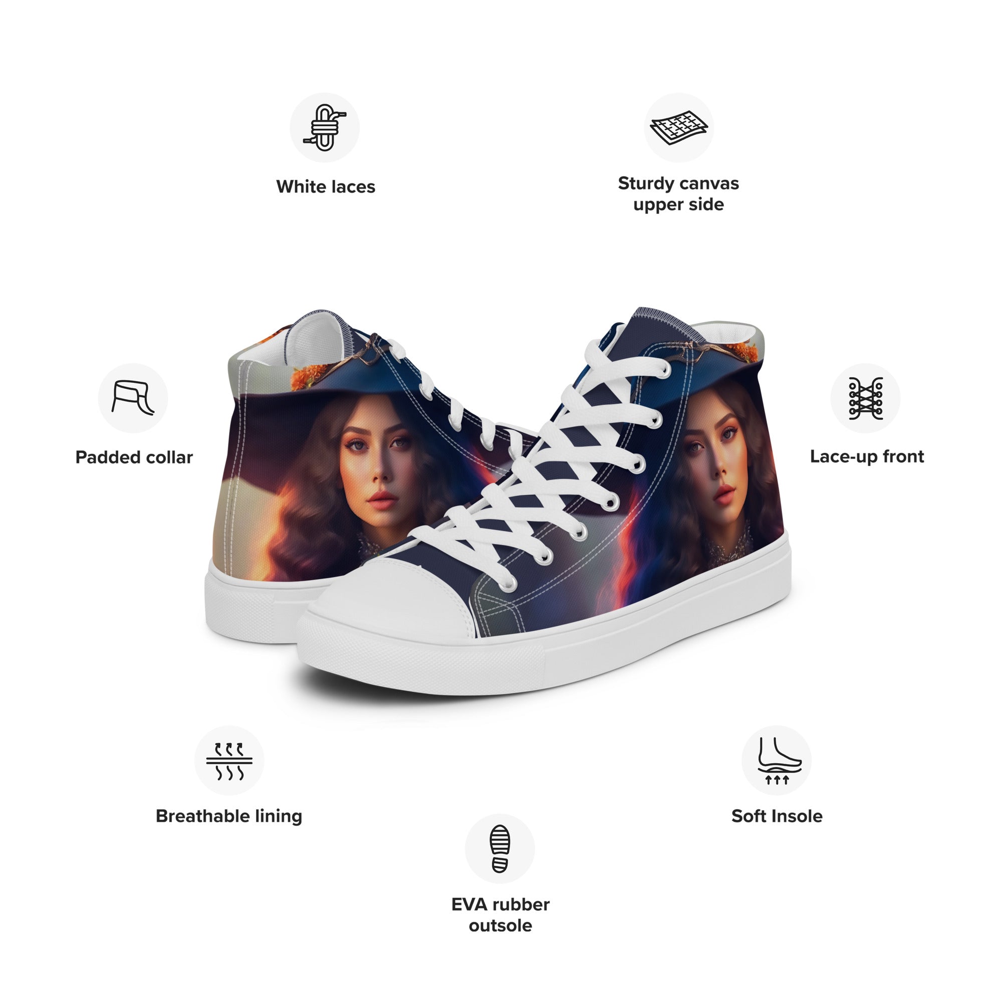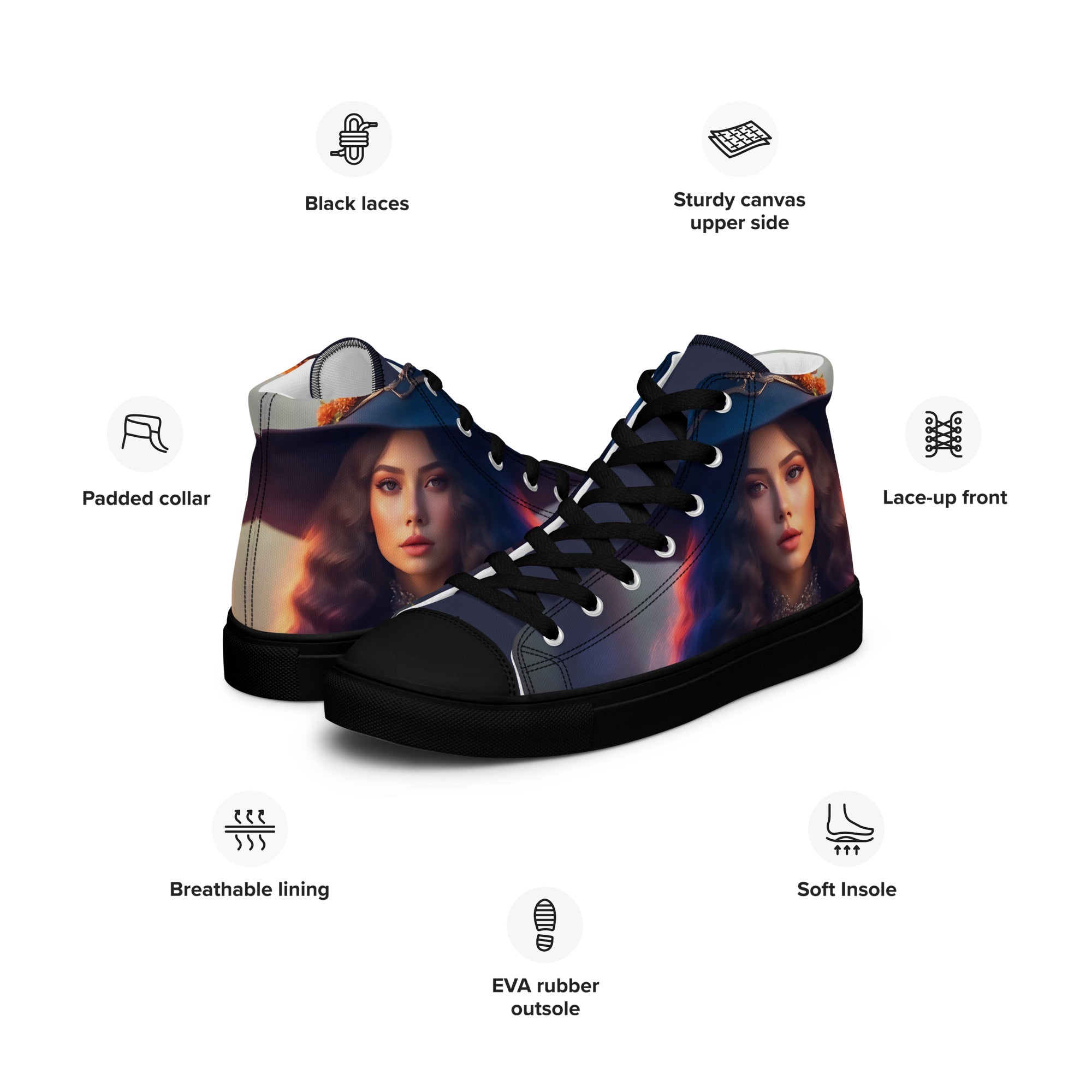 Step into a world of wonder and intention with these high-top canvas shoes, crafted to resonate with the energy you wish to carry through every step. Imagine these shoes as more than just footwear; they are companions on your journey, empowering you with each stride.