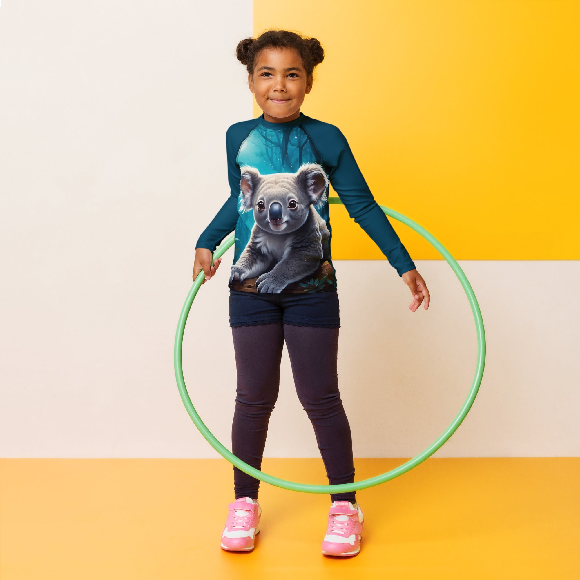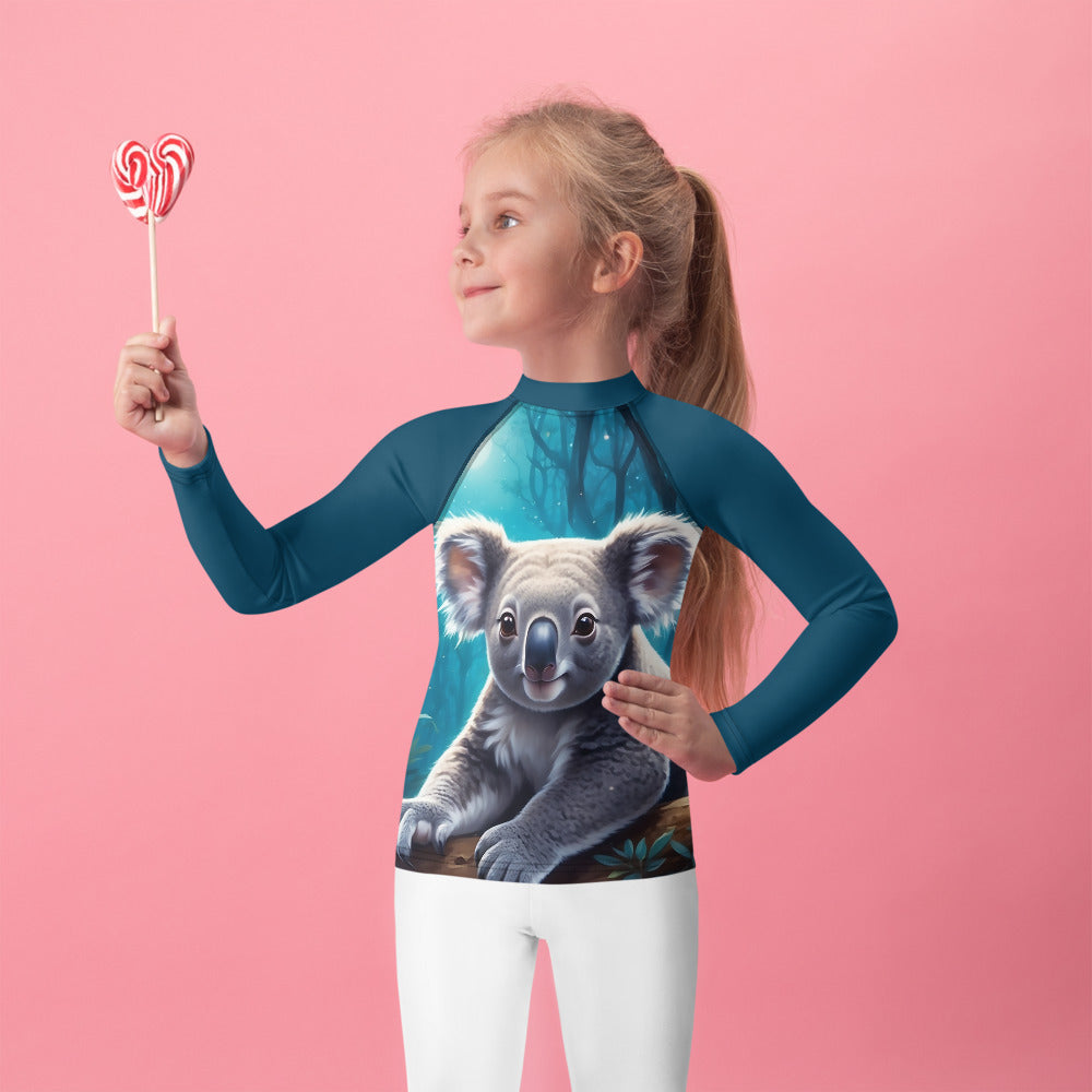 Picture them running along golden shores, splashing through enchanted waves, or racing under the brilliant sun. This rash guard becomes their loyal armor, crafted with sun-protective fabric that feels as light as a whisper yet holds the strength of a guardian. It offers a magical barrier against the sun’s warm embrace, so they can roam freely, from the first light of dawn to the dreamy hues of twilight.